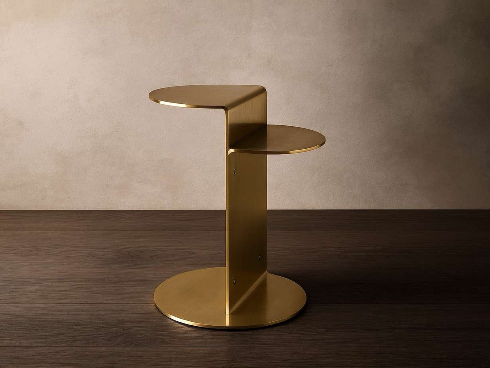 A premium stainless steel side table with luxurious gold finish, designed in a modern cantilever-inspired structure. The bold geometric form and sturdy round base create a perfect blend of strength and contemporary elegance, making it ideal for sophisticated interiors.