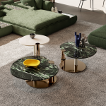 The Gemini Luxe Table Set is a striking pair of contemporary side tables designed to complement each other while showcasing contrasting aesthetics. One table features a bold black marble top with white veining, resting on a sculptural base of white and gold tones, exuding richness and drama. The other offers a softer visual balance with a matte ivory surface and a gleaming cylindrical metallic base, adding a touch of understated elegance. Together, they embody duality—dark and light, bold and subtle—creating a harmonious centerpiece ideal for sophisticated modern interiors. Their asymmetrical heights and finishes make them perfect for layered styling in luxury living spaces.