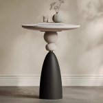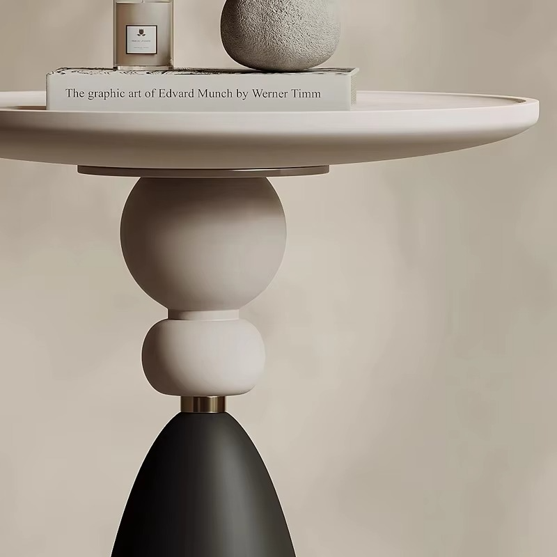 Elevate your interior with the Luna Sculpt Side Table, a refined blend of artistic design and durable craftsmanship. Its round top is crafted from premium High Density Fiberboard (HDF), finished with a smooth matte coat that’s both elegant and easy to maintain. Supported by a uniquely contoured hardware structure, the base combines modern geometry with soft curves — featuring a matte black conical pedestal and contrasting spherical accents that add a touch of sculptural grace.