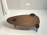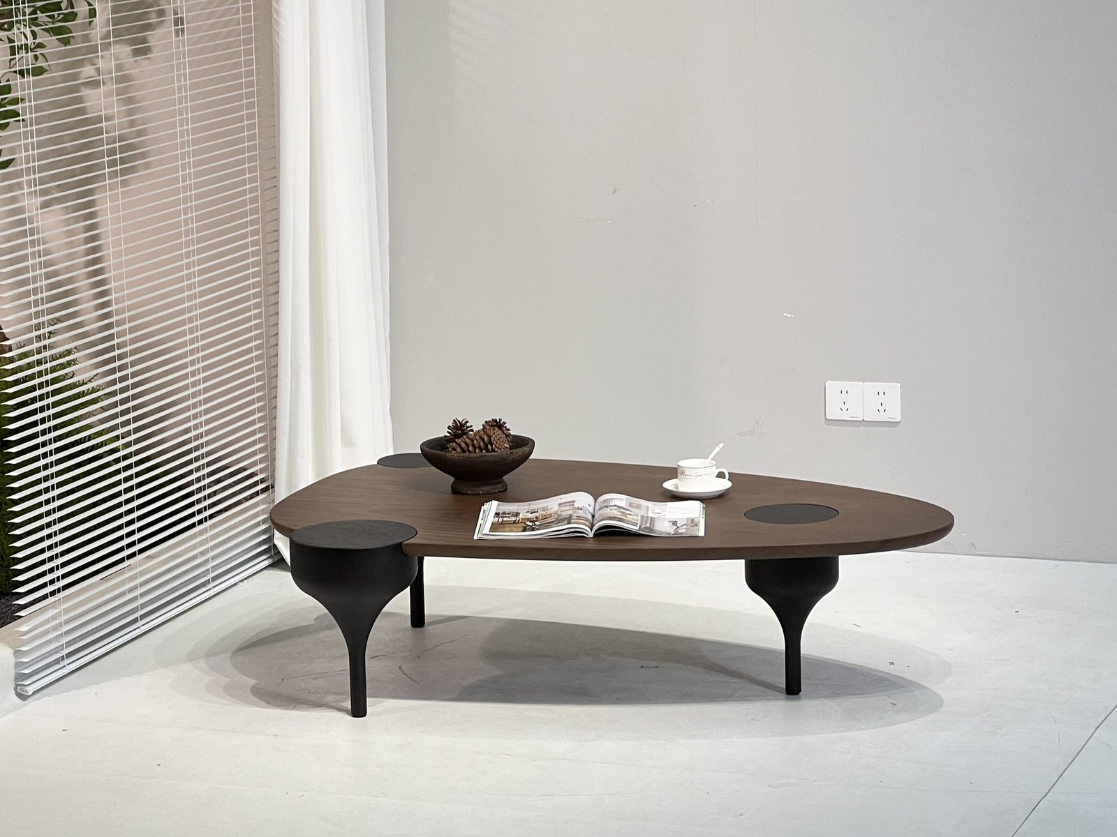 Its organic triangular silhouette and warm walnut tone create an inviting focal point for contemporary living rooms, lounges, and designer interiors. The sleek matte finish, complemented by subtle circular accents, adds a touch of artistic elegance that makes it stand out effortlessly.