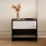 The Oslo Veneer Bedside Table blends timeless elegance with modern craftsmanship. Built from high-density fiberboard and finished in a smoked wood veneer, it exudes natural warmth and refined texture. The drawer front, upholstered in khaki leather, adds a touch of sophistication and softness to the bold wooden frame. With its open shelf for accessible storage and clean geometric form, this piece perfectly complements contemporary bedroom interiors.